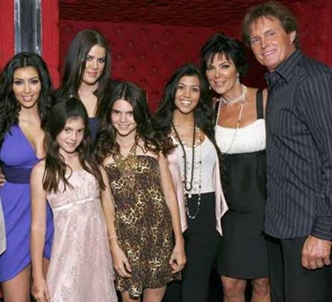 Here’s the family portrait. That’s Olympian Bruce Jenner on the right (stepdad to Kim, Khloe and Kourtney Kardashian and father to the two younger girls to the front) :